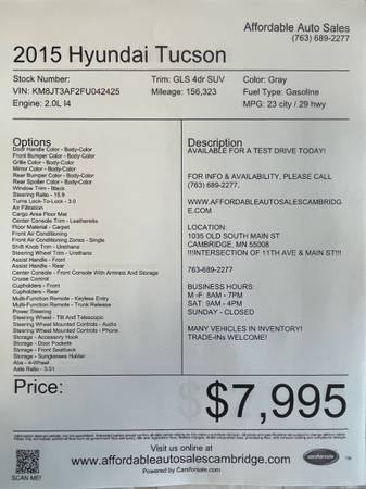 2015 TUCSON GLS for sale - Cambridge, MN - craigslist