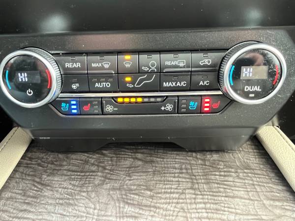 Premium features include leather upholstery, heated and cooled seats, power-folding third row, panoramic sunroof, and advanced driver-assist lechnologies