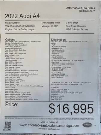 2022 audi a4 premium quattro for sale - Cambridge, MN - craigslist