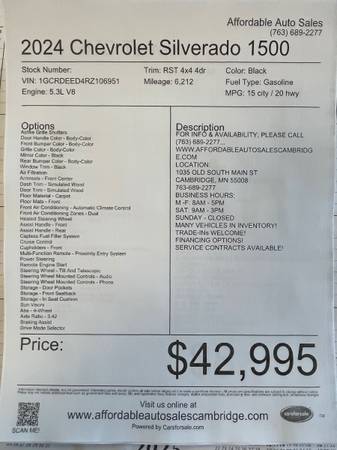 2024 CHEVY SILVERADO 1500 RST DOUBLE CAB PICK UP TRUCK...