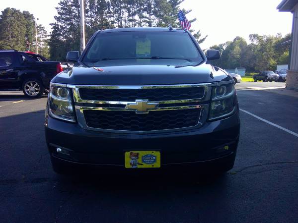 This super clean Tahoe came out of Missouri. It is loaded with great features like: 20" chrome wheels with brand new tires, heated leather seats, heated steering wheel, MyLink Infotainment with with Apple Car Play Bluetooth USB and AUX inputs, Bose surround sound, 2nd row bucket seats, power folding 3rd row seats, power glass moon roof, tow package, tri zone automatic climate control, wireless phone charger, and so much more. We have great financing with low monthly payments. Call us now American Auto Sales 651-464-3600.