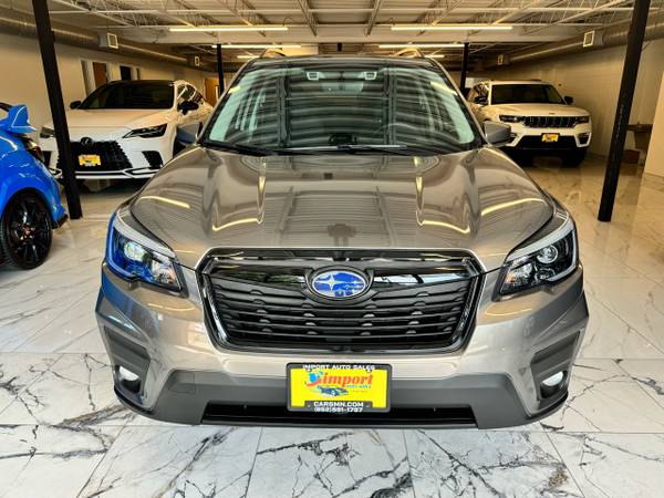 Step into adventure with this sleek and powerful 2021 Subaru Forester! This beauty comes equipped with a 2.5L 4 Cyl DOHC engine and a Lineartronic CVT automatic transmission, making every drive smooth and efficient. The X-MODE system ensures optimal performance in any terrain, while the full-time all-wheel-drive provides stability and traction. With a spacious interior featuring heated front seats, automatic climate control, and plenty of storage options, comfort is always a priority. You'll turn heads with the bold black machine finish alloy wheels, panoramic sunroof, and automatic LED headlights. Safety is paramount with features like EyeSight pre-collision braking and driver monitoring alerts, giving you peace of mind on every journey. Whether you're cruising through the city or exploring off the beaten path, this Subaru Forester is ready to take you on your next adventure in style and comfort.