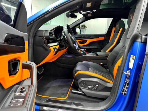One Owner. Dealer maintained and serviced. Full remaining factory maintenance and warranty from Lamborghini. PPF (Paint Protection Film) on the entire front of the vehicle. Original MSRP $297,041. This 2023 Lamborghini Urus S Features a 4.0L Twin-Turbo V8 Engine Producing 657HP/627TQ. 8-Speed Automatic Transmission. Permanent All-Wheel Drive with Active Torque Vectoring and Rear Differential. Adaptive Air Suspension. Apple Carplay. Carbon-Ceramic Brakes. New Blu Eleos Matt Exterior over Nero Ade Interior with Bicolor Sportivo Leather. Full Electric Front Seats. Sport Steering Wheel Full. Ambient Light Package. Park Assistance Package. Advanced 3D. Panoramic Roof. Orange Calipers. 23 Shiny Rims Taigete. Rear Spoiler in High Gloss. Black Chrome Exhaust. Privacy Glass Acoustic. Black Anodized Trim. Interior Dark Package. Rear Lamborghini Logo in Black. Optional Stitching. Lamborghini Door Lights. Embroidered Headrests. Seat Belts in Arancio. Rain Sensor. Lamborghini Infotainment System. Adaptive LED Headlights. 4-Zone Climate Control. Every Vehicle at Right Buy comes with a full inspection report. CarFax vehicle history report. Affordable extended coverage options and low rate financing options. Set an appointment to view the vehicle in our heated indoor showroom.