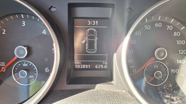 This VW run's great! It has all the options, including heated leather seats! Gets around 30 mpg in town and 40+ mpg on the highway. There are 2 sensor lights on, one for low tire pressure (the tries are like new) and one for the airbag.