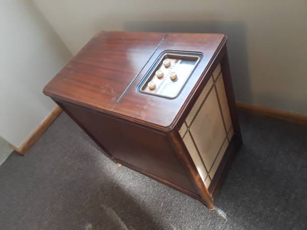 Tube radio/phonograph,78 rpm,includes 10 inch records.Works well,from late 40's or 50's,sounds good.