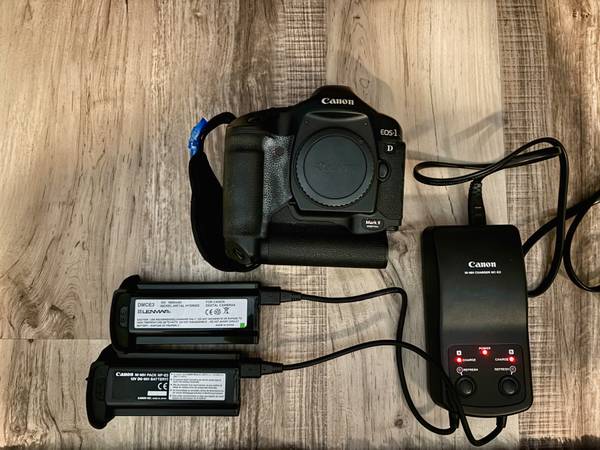 Canon EOS 1d Mk II, 8.2Mega pixel, Dual CF/SD card slots, OEM battery and charger plus 3rd party battery. Used in decent condition.
