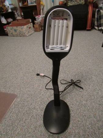 Like new Intertek desk lamp with new FML 27 watt 4 section florescent bulb and an on/off switch on the back of the bulb section. This lamp has a bendable/flexible neck to allow the light to be focused down, or through 180 degrees to straight up. The unit is solid and stable so it does not tip over in use thanks to the size and weight of the base. Target lists this style lamp anywhere from $66 to $120 new with most of them around $90, and Menards and Lowes have very similar lamps for $49 or almost double my price.