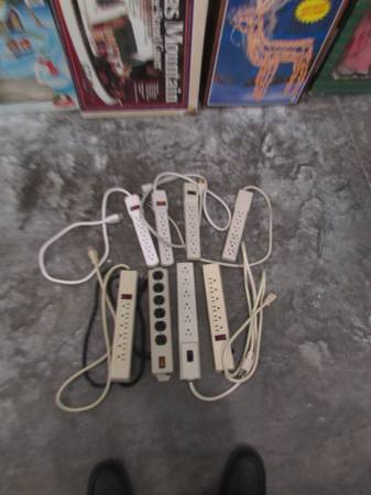 Eight used but all have been tested and work as they should. There are several different brands, colors, and cord lengths but each has 6 outlets. Some have lighted on/off switches and reset buttons but these would be a welcome addition to someone to puts out multiple lighted and animated scenes for the holidays. The $18 price is for all 8 but if you only want some of them, please make an offer for our consideration.