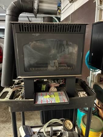 Natural gas freestanding, fireplace looking heater needs to be vented to the outside and will work on the thermostat on the wall