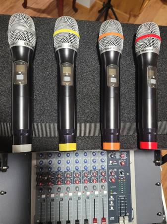 Professional Karaoke/DJ System Peavey pv10usb mixer board with effects Ferman PL-8C Power Conditioner 4 GTD Cordless Mics Swing Out Paded Laptop Shelf All Rac Mounted In A Odyssey Flight Case Everything Pre Wired Ready For Amp Or Powered Speakers Not Included Used Only 3 Times A Year For The Last 5 Years Perfect Condition No Speakers Included