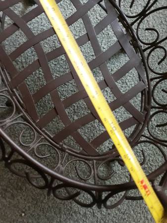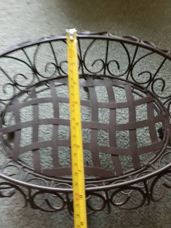 emails only please. Metal basket Measures 18 inches tall (including feet and handle), opening measures 7 1/2 inches X 12 inches. New.