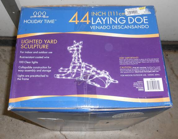 * NEW 44 inch Laying Doe Outdoor Christmas Lighted Wire Decoration. Can be used either indoors or outdoors, collapsible for easy storage, 100 lights, easy to setup, rust resistant. Have 2 of them available, asking 20.00 each per deer.
