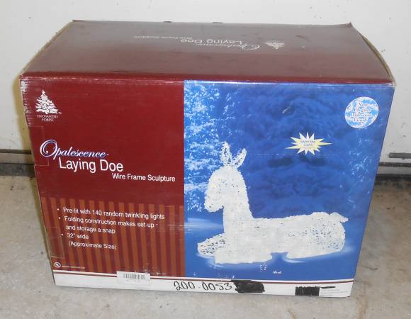 * NEW Laying Doe Lighted Sculpture. Collapsible for easy storage, 140 twinkling lights, sparkling lights, easy to setup, rust resistant. 32" wide. Asking 20.00