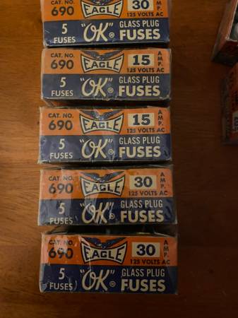 New Vintage Sealed Boxes of Eagle OK Glass Plug Fuses