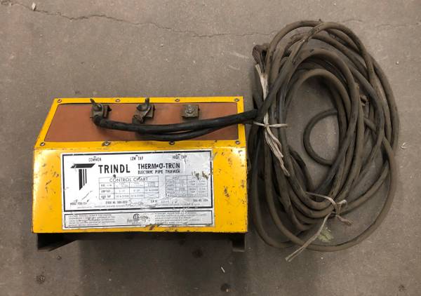 Therm-O-Tron Electric Pipe Thawer • Mfgr: Trindl • Model: P300-Tx • Low tap • high tap • Common • Dimensions: 16”W x 11”D x 12”H • Weight: Approx. 70# - - - Includes 2 heavy duty cables with clamps...