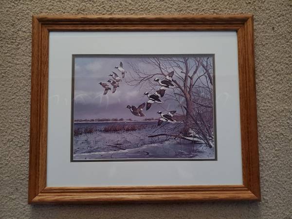 Waterfowl Duck Framed Wildlife picture & Schmidt Beer Can - general...