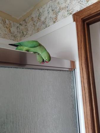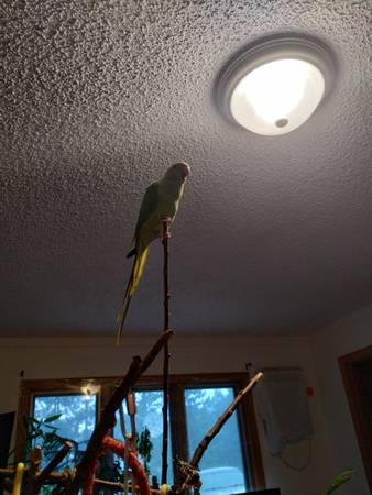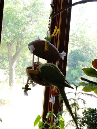 I'm looking for someone who wants a highly intelligent, energetic companion. Echo needs space to fly, LOVES to fly, loves playing with toys and foraging, and she's not physically affectionate except on her terms. She does however want to be near you and hates being alone as most birds do, and is incredibly social.