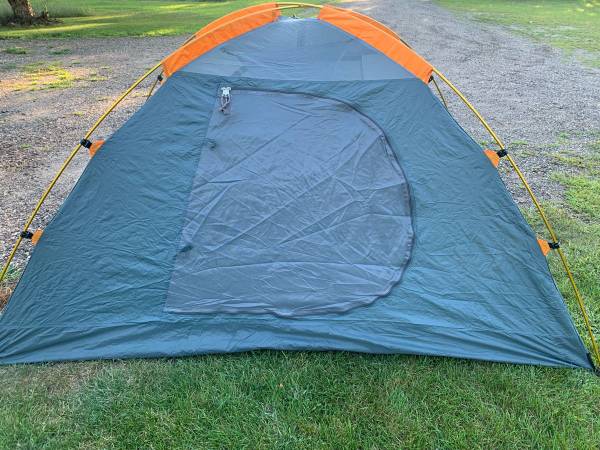 Tent used handful of times for camping and has been in storage. Excellent like new condition. There is lots of ventilation and windows for a scenic sky view. Also comes with rain fly cover for blocking rain. Two main entrances and multiple windows. Easy to set-up and disassemble. Very spacious and well maintained. 2 person tent in excellent used condition. Great to use for kids camping in the yard. Comes from a smoke free home. I can meet in the evenings or on the weekends in Linwood township. All communication will be through Craig’s list email exchange, please watch your junk mailbox. Cash only must be willing to pick up.