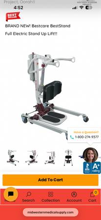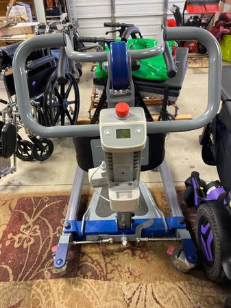 Bestcare Beststand sit to stand lift. This lift is best for people who can put weight on their feet, but not transfer to chairs very easily. Lightly used over the last six months. Brand new their app approximately $1000-$1500 so this is a great deal.