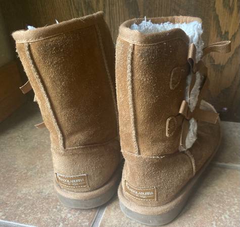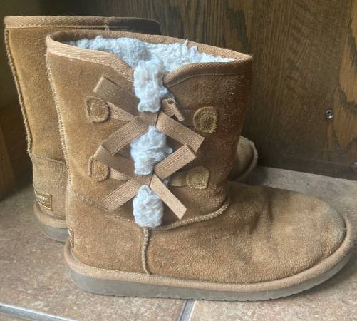 Nice condition as can be seen on the soles and in the images. Cute bows on the sides. My growing high schooler is now a size 7 so selling this pair of Uggs. Nonsmoking home with convenient pickup near the Village Inn in Wyoming MN right off interstate 35. Many items listed as we downsize