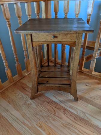 Original Ron Fisher distressed pine end/occasional table with drawer.