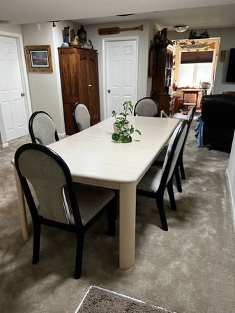Imagine how many memories will be made around this dining table set. The memories will be created for many years with the newly refinished solid oak table and new upholstered chairs, This table has already had one great lifetime and is just waiting for a second home to create many more memories.