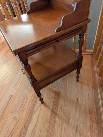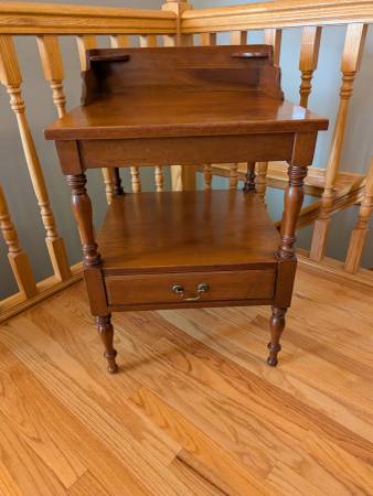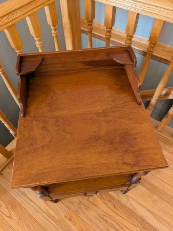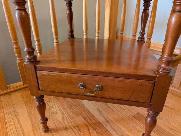 VINTAGE EMPIRE FURNITURE CO CHERRY SIDE /END TABLE WITH DRAWER AND SIDE PULL OUTS COLONIAL TRADITIONAL STYLE EXCELLENT CONDITION SOLID CHERRY $75 CASH ONLY LIGHT SCRATCHES ON FINISH 27X21X21 LIVE IN...