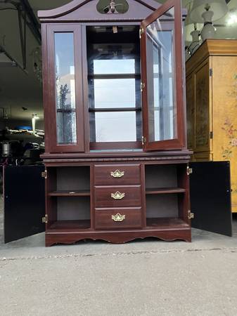 Here is a display case/China hutch it is mirrored and lighted 7 feet tall 51 inches wide has glass shelves call with questions. Thanks for looking Chris