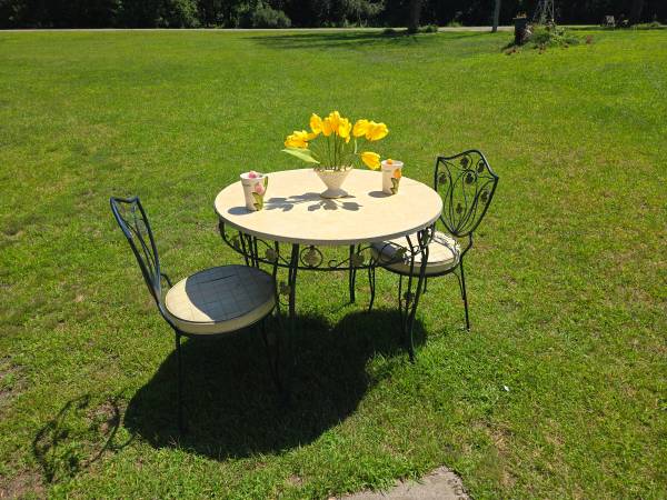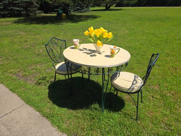 Very cute set. Good condition. Seats need reupholstering. 2 extra leafs for the table.