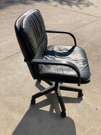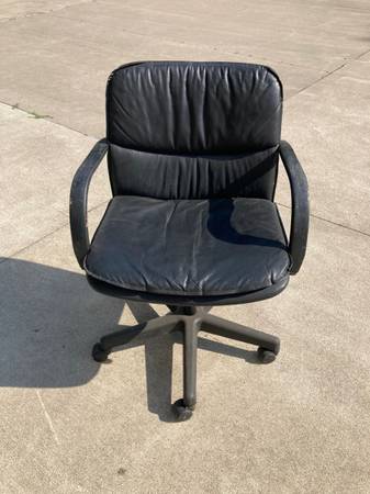 Leather swivel chairs with roller wheels in very good condition.. Six chairs available.