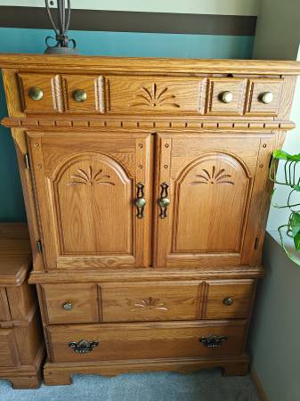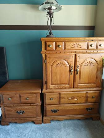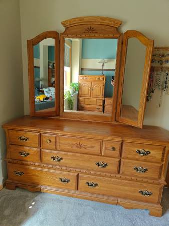 Palliser furniture solid wood set with dresser+mirror, chest, and 2 nightstands. From a smoke free home and in great condition.