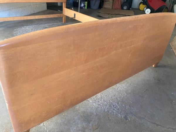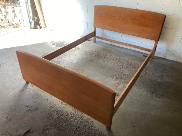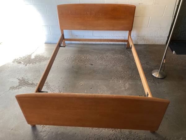 Mid century modern Heywood Wakefield double bed frame. M510 Encore was manufactured 1948-53. Champagne color.