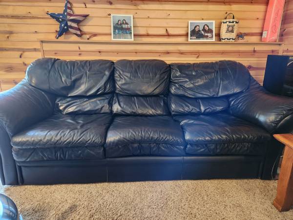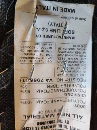 Excellent quality, Italian made. Navy blue. Sofa, love seat, chair, and ottoman. My sister bought these because she has three kids and they are very easy to keep clean, just wipe them off. She paid over 4000 new. A couple of small rips under the cushions and a couple of small scuffs in hidden spots, but nothing major.