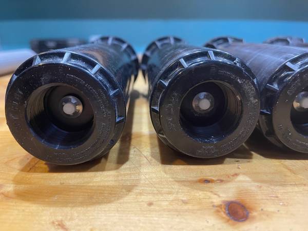 These Hunter I-40 sprinkler heads are commercial quality sprinkler heads that deliver water with accuracy and efficiency over long distances, and are the top choice for demanding, large turf projects. The I-40 is adjustable from 50 to 360 degrees. The I-40 is built to last in the harshest sports, public park, and commercial environments. These heads (set of 6 heads) were used for one day on our residential clay tennis court. However, our house water pump doesn't have enough flow to be able to run these heads. They are basically brand new and normally run $80 each. Total hours of use on them is less than an hour.