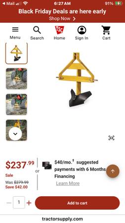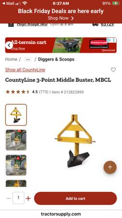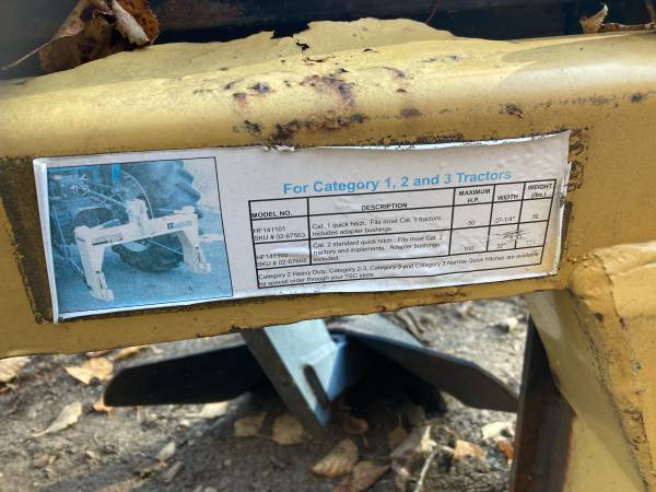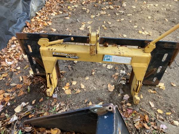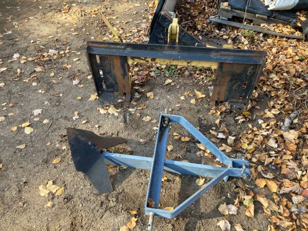 Three point quick hitch with single row cutter set up to be attached to skid steer including skidsteer plate cost $200, 3 point quick hitch cost $200 and the single cutter cost $200, selling all...