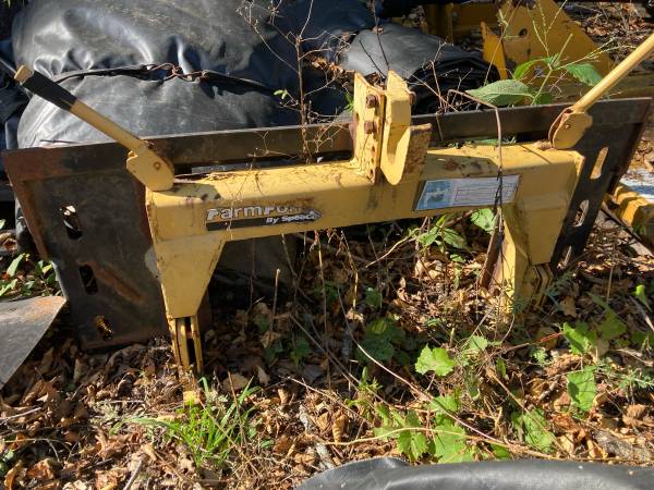 Three point quick hitch with cultivator set up to be attached to a skid steer