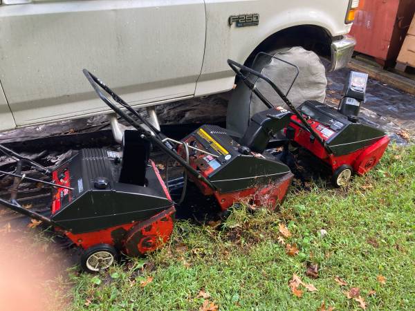 For sale three push paddle type snowblowers, two were working previously. Had already put on new carburetors and fuel filters and engagement cables on one of them . One is a parts machine. Beat the winner snow blower rush . If I can’t get them to start when you’re here to pick them up they’re yours for free.