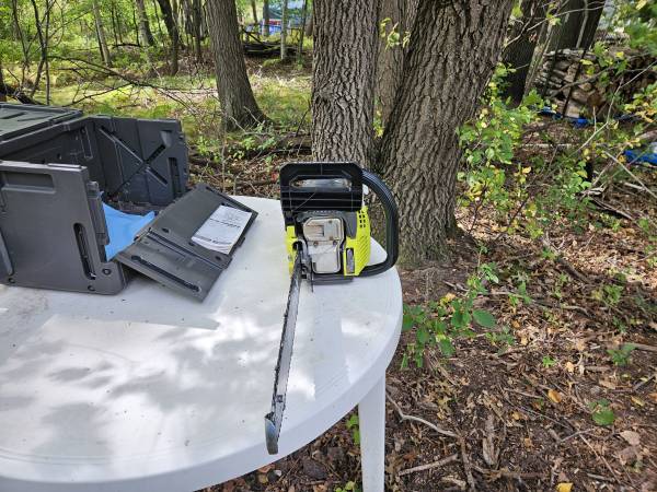RYOBI Chainsaw RY3818 38cc/18"bar Starts good runs good & cuts good. Come with case & wrench. Pickup in Bethel mn. May take your non running saw on partial trade depending on condition.
