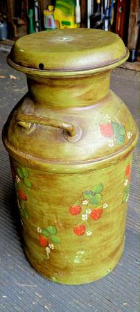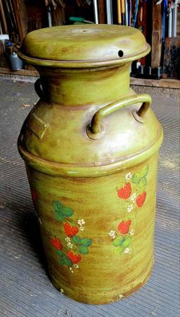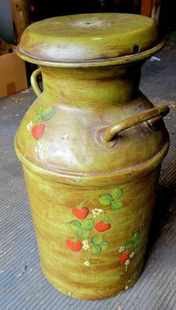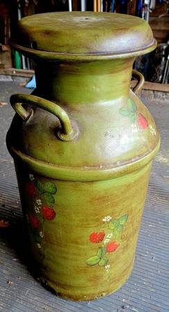 BEAUTIFUL Hand Painted Antique Farming full size Milk Can OLD! Yard Planter, Plant/lamp stand, UNUSUAL, THE ROUND HANDLES ARE THE ANTIQUE CANS,