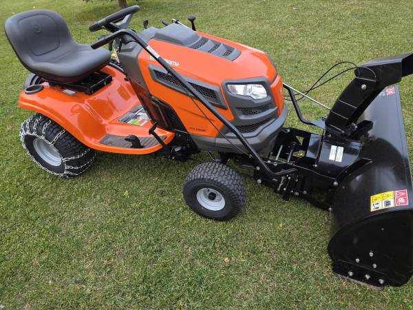 I am selling a Husqvarna rider, it has a 22 Hp Briggs twin cylinder engine, 46" mower deck, foot pedal operated hydrostatic transmission with cruise control, 42" 2 stage snowblower attachment, weight bracket with weight, 2 link tire chains, 149 hours, everything is in like new condition, it has always been stored indoors, fresh oil change and filter, runs and works great, needs absolutely nothing, it is ready for the snow.