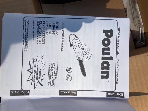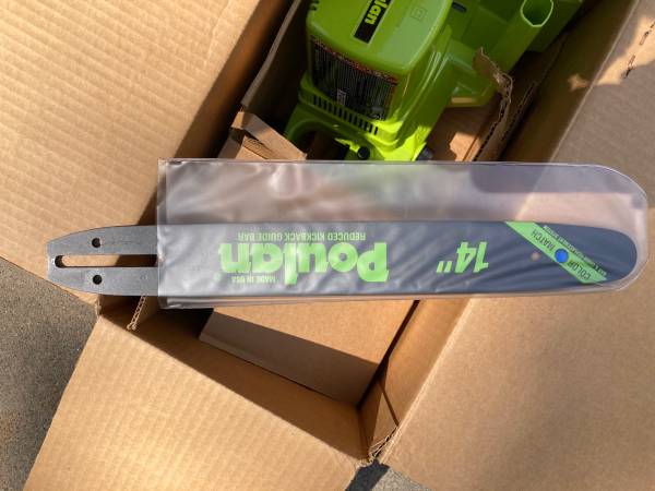 Poulan Electric Chainsaw new in box. Never used 10.5 amp, 14 inch, 2hp. Made in USA.