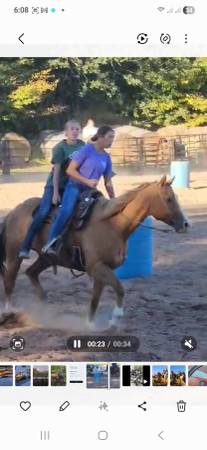 Peanut is a 14.3 hands ranch gelding. Easy going and gentle. Enjoys people. Great for trailriding and perfect for the kids. Also does breakaway. Call or text Ron for further details .