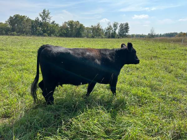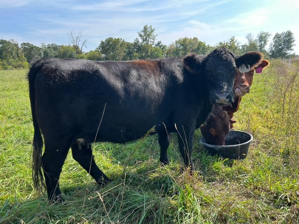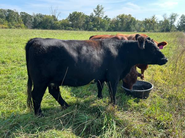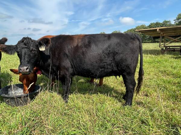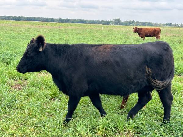 Very nice, moderate frame angus cow with cross heifer calf. Need to reduce Herd size before winter. Probably 1100 lbs. Exposed to nice Red Devon bull. Due next mid May.