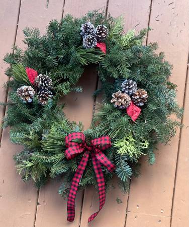 $22 each. Real mixed boughs wreaths, a bow (other bow options too), pinecones, etc. Nice bough mix. I also have pots and swags listed too. Pickup near the Village Inn in Wyoming MN