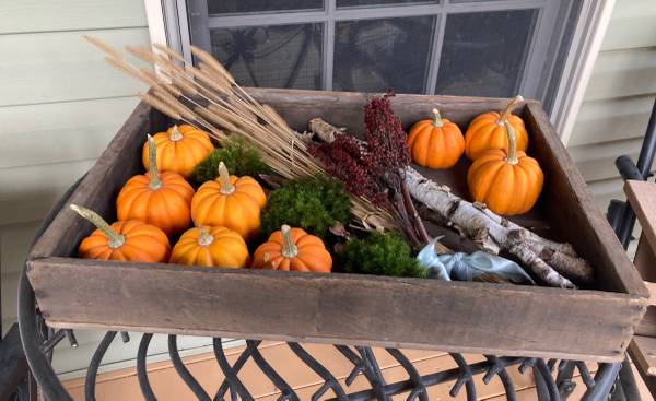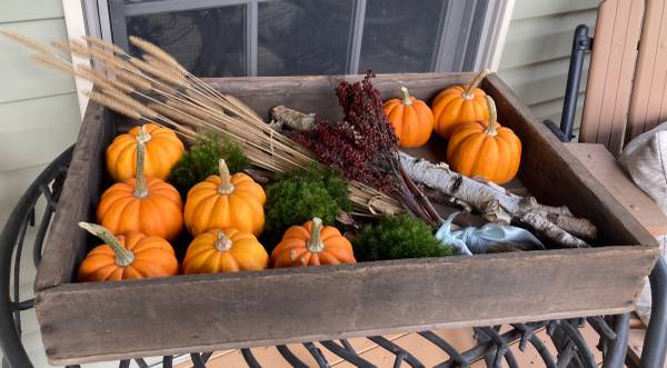 Fresh made fall patio planter porch pot display, autumn mini pumpkins - $5 (Wyoming, MN (near Forest Lake))