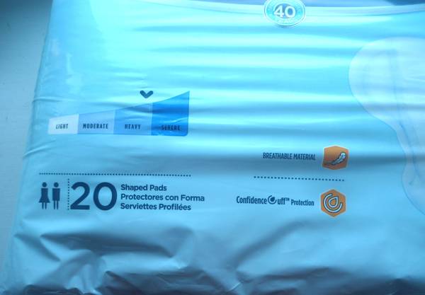Attends shaped incontinence pads, unisex, super and regular absorbency, 20 per package. Available are 2 new/unopened packages of super absorbency and 1 new/unopened package of regular absorbency. Take all three for $50. CASH ONLY. Feel free to email me with questions or if interested.