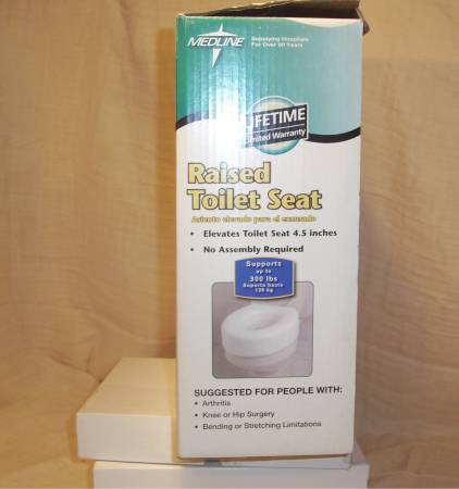 MEDLINE Raised Toilet Seat , brand new, never used, still in box. Elevates Toilet Seat 4.5 inches, If interested call ask for Darrel