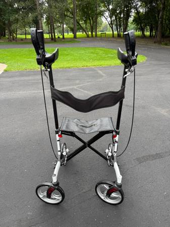 Upright Walker, Stand Up Folding Rollator Walker Back Erect Rolling Mobility Walking Aid with Seat, Padded Armrests for Seniors and Adults, White Highly adjustable, $125.00 Cash OBO