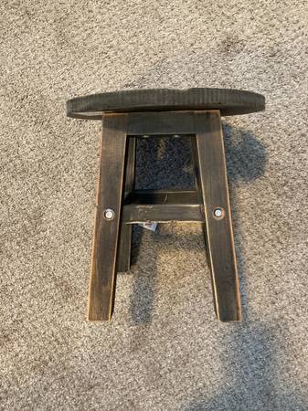 New, small carved cat stool. Re-creation of an antique style stool. Carved kitty on top, 4 legs, wood with a dark walnut finish. 10.25" wide x 10" high Cash only, No checks of any kind.