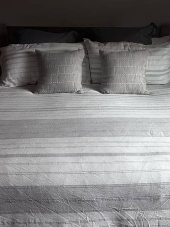 King comforter, 2 throw pillows, 2 pillow shams. Hearth and home. Clean. Pet free smoke free home.